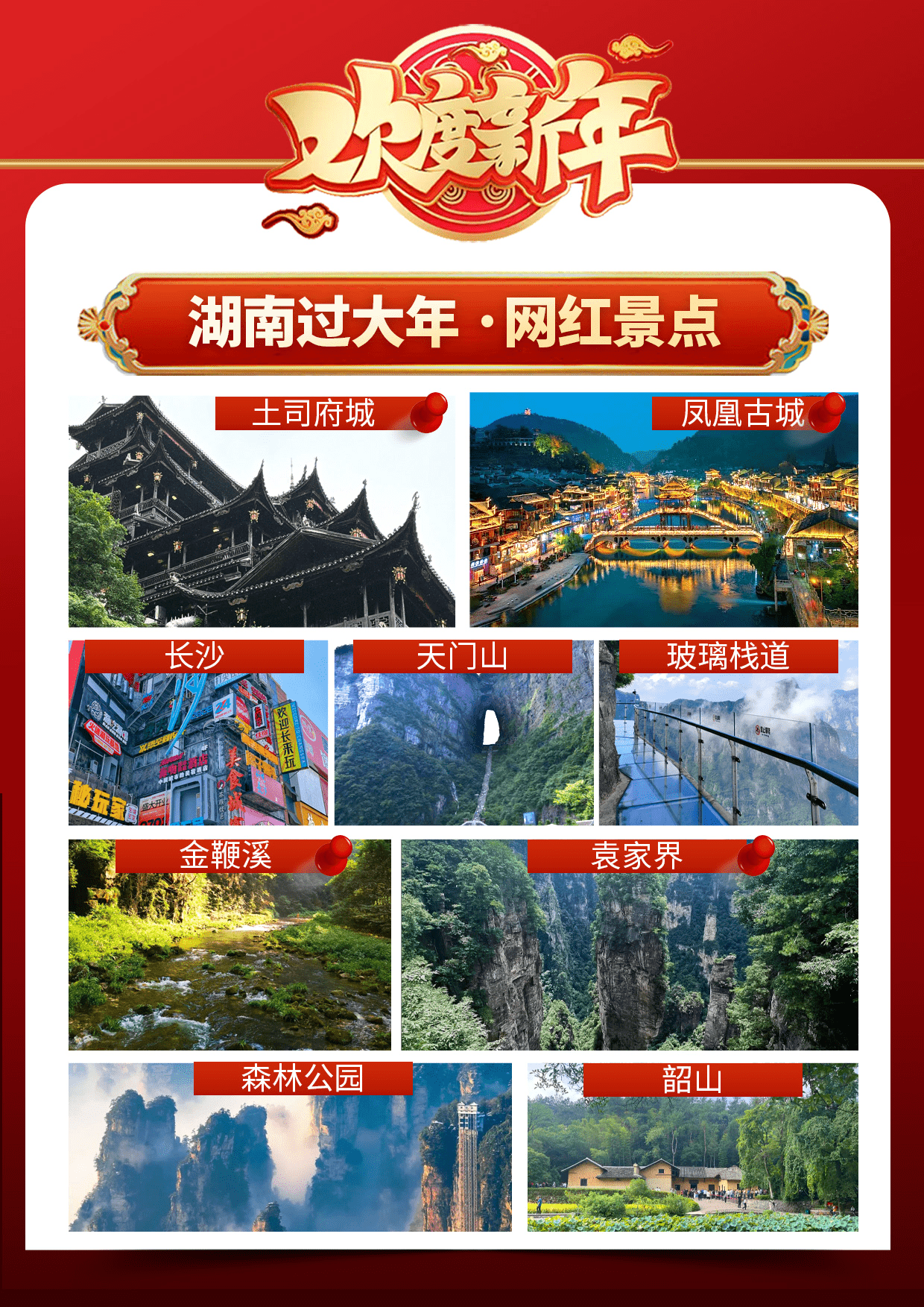 春节【湘全景】长沙/韶山/天门山-玻璃栈道/森林公园/袁家界/金鞭溪/土司府城/凤凰古城6日游