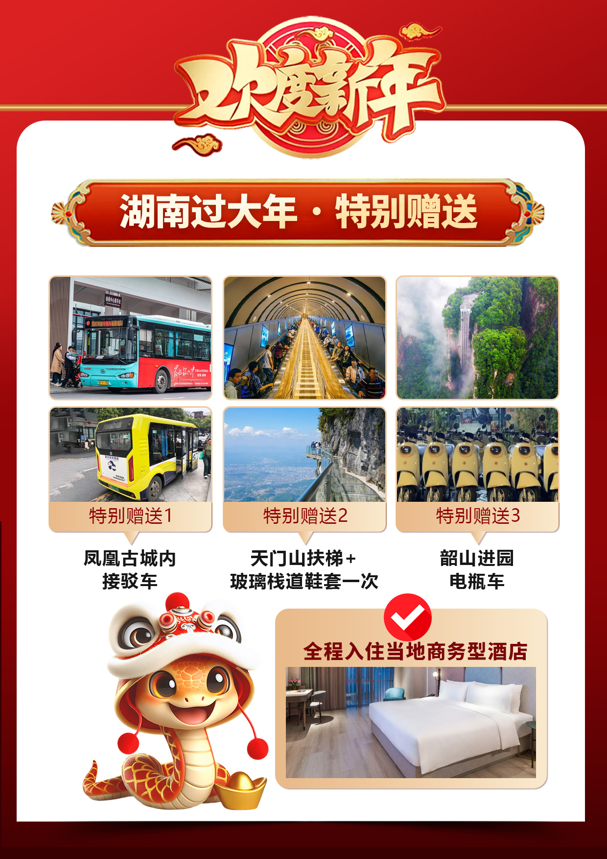 3、如遇大雪或结冰等不可抗力因素,景区天门洞、玻璃栈道封路、环保车关闭,无法正常游览旅行社不予承担责任;(每年 12 月到次年 2 月因天气原因会关闭天门洞、玻璃栈道、环保车,如环保车关闭景区会执行索道上下)