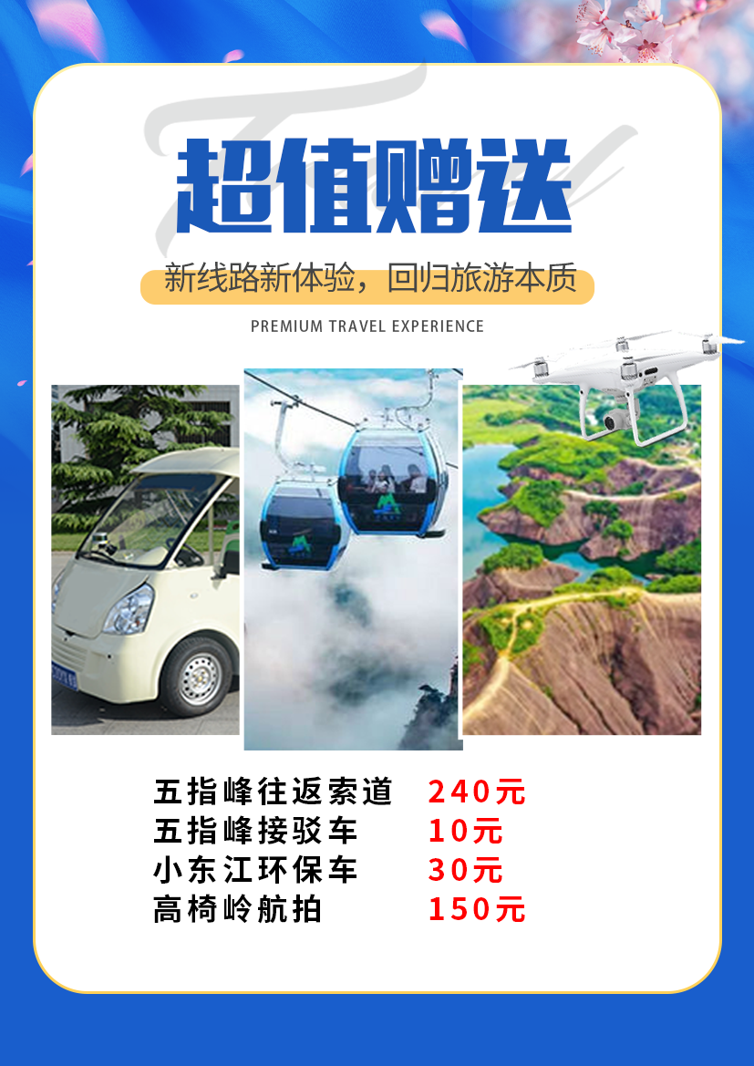 ❤超值赠送:价值150元高椅岭航拍+莽山索道往返240元+接驳车10元+东江湖景交30元