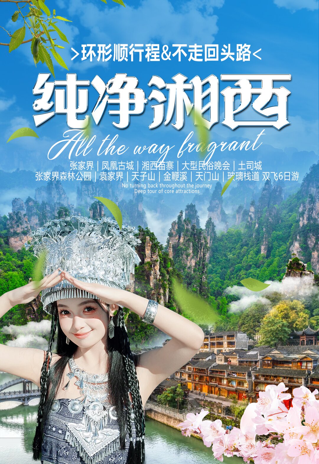 (赠送:百龙天梯单程、天门山扶梯、鞋套,韶山环保车、凤凰接驳车、湘西苗寨、土司府城、张家界魅力湘西表演/千古情 所有景点无优无免无退费)