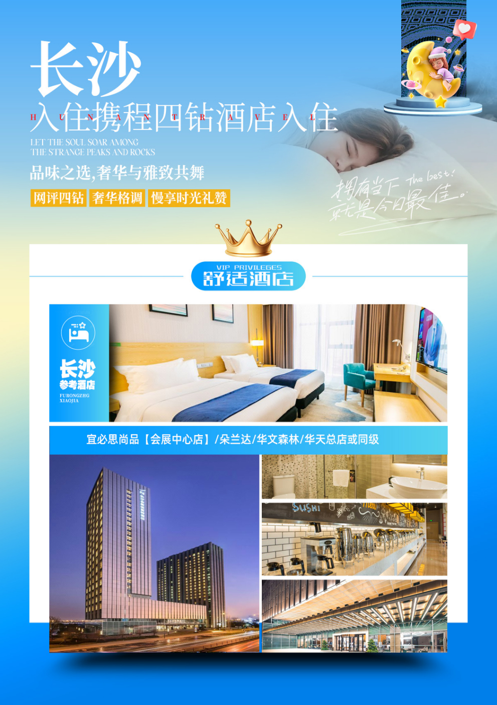 长沙:宜必思尚品【会展中心店】,朵兰达,华文森林、华天总店,黄金华美达,恺宸酒店,尚成酒店,华良华天,宜必思尚品,怡程酒店,华年世嘉 宜尚广电店,皇爵假日酒店,宜尚blus或者同级(携程四钻)