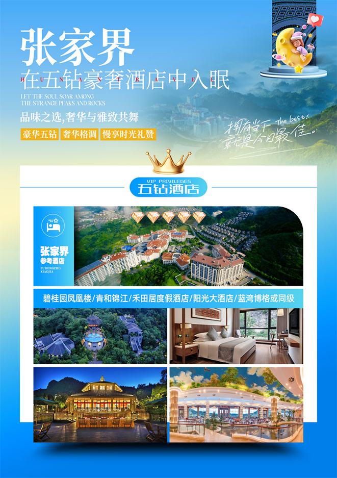 2、酒店:3晚五钻 2晚四钻或客栈;不含房差(旅行社团队价),长沙、张家界、凤凰共5晚,酒店无正规三人间。不占床无退费