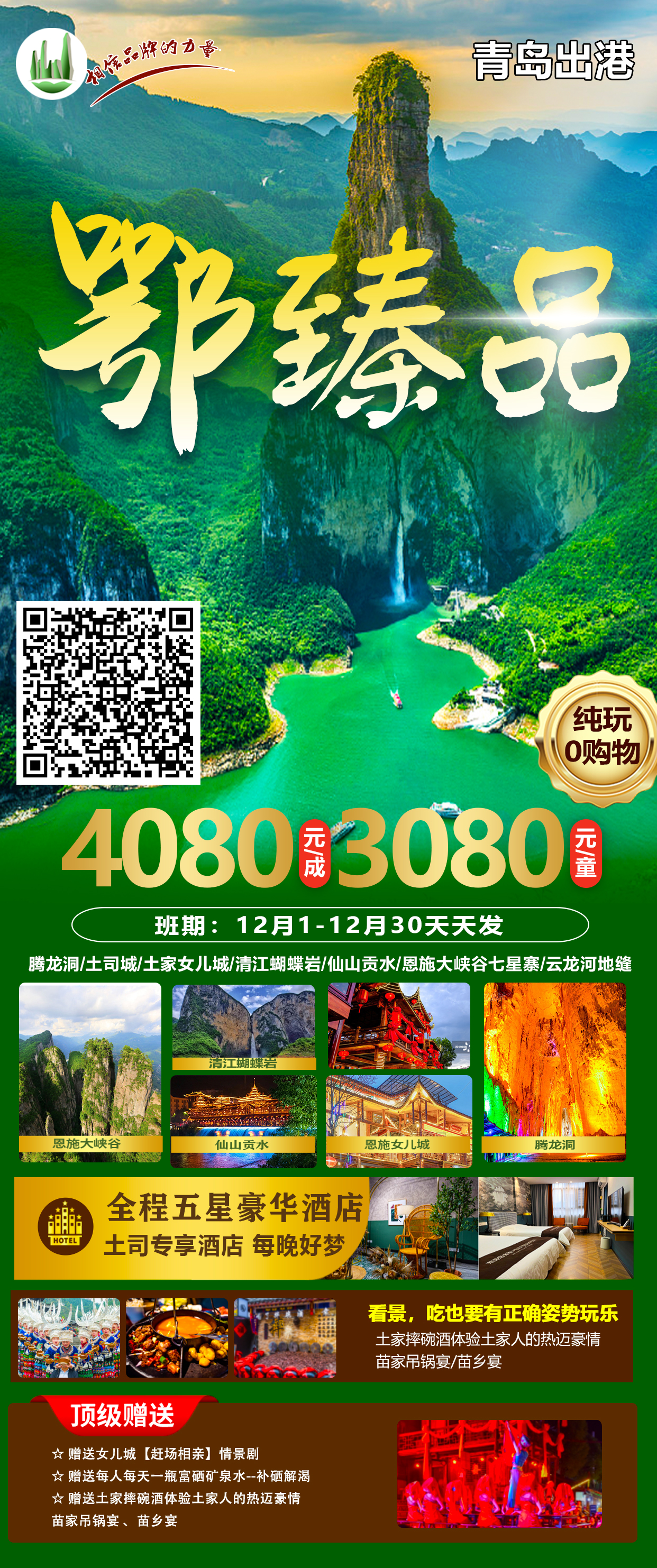 ★舒适体验:住星级酒店,玩五A景区,吃五星大餐,享五星服务,做五星游客,爱上恩施!