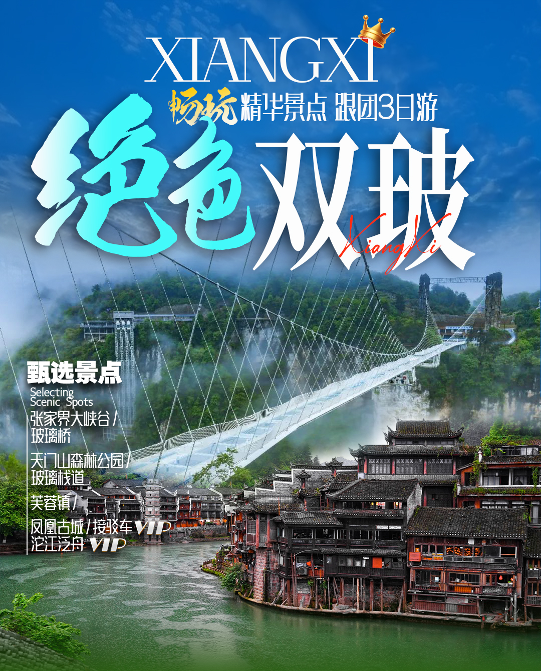4、儿童门票超高自理:14岁以下儿童:大门票(合计268元/人):玻璃桥3元/人、土司王府(或老院子)10元/人、天门山3元/人、芙蓉镇门票60元/人、凤凰古城三景50元/人、凤凰农家船34元/人、魅力湘西晚会(普座)158元/人